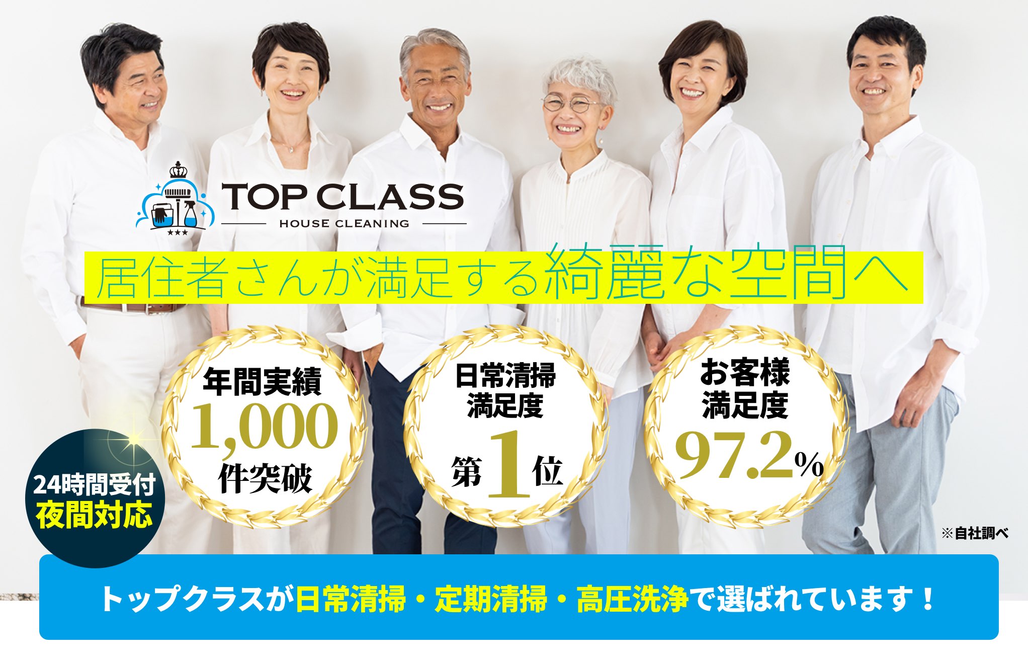 アパートマンション共用部の日常清掃・定期清掃のトップクラスでは個人経営ではなく株式会社として多くの日常清掃・定期清掃スタッフが在籍しており年間5000室以上の数多くのアパートマンション共用部の日常清掃・定期清掃の実績があり個人様や法人様建物オーナー様まで、お客様に喜んでいただいております。お陰様で満足度は95%以上、不動産会社様や建物管理のオーナー様には9割以上でアパートマンション共用部の日常清掃・定期清掃などリピートを頂いております。ご安心してアパートマンション共用部の日常清掃・定期清掃をお任せください。ハウスクリーニングの専門スタッフがお客様の元へお伺いさせて頂きます。便利屋業務や家事代行の清掃ではなく不動産会社様や管理会社様の審査基準をクリアしたアパートマンション共用部の日常清掃・定期清掃サービスをご提供いたします。